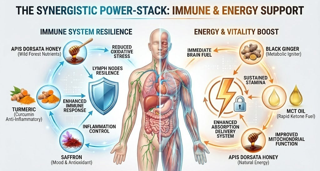 We source our raw honey from pristine, organic apiaries where bees thrive in natural environments, ensuring top-quality flavor and potency. The turmeric, black ginger, and saffron extracts come from trusted farms in regions like India and Southeast Asia, renowned for their nutrient-dense harvests. Every jar is produced with care to preserve the integrity of these exceptional ingredients.